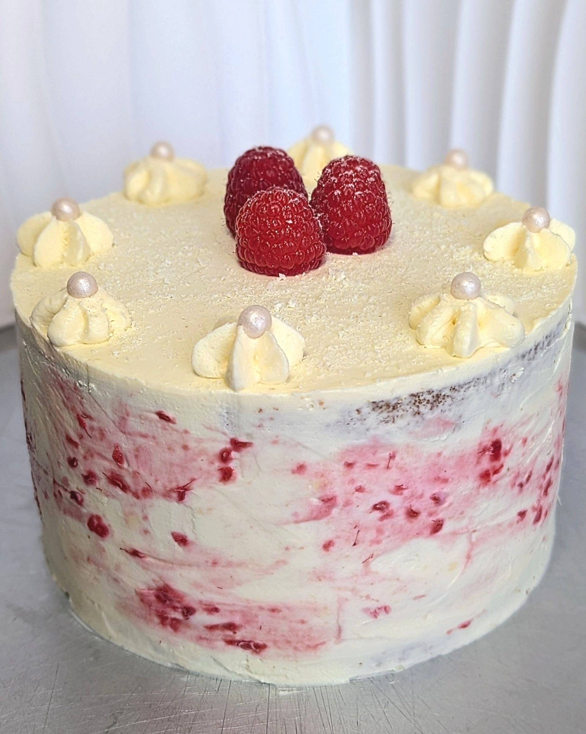 Helle Biskuitböden treffen auf Schichten einer luftigen Quark-Mascarpone-Creme, verfeinert mit einer sanften Himbeerkomponente und weißer Schokolade.