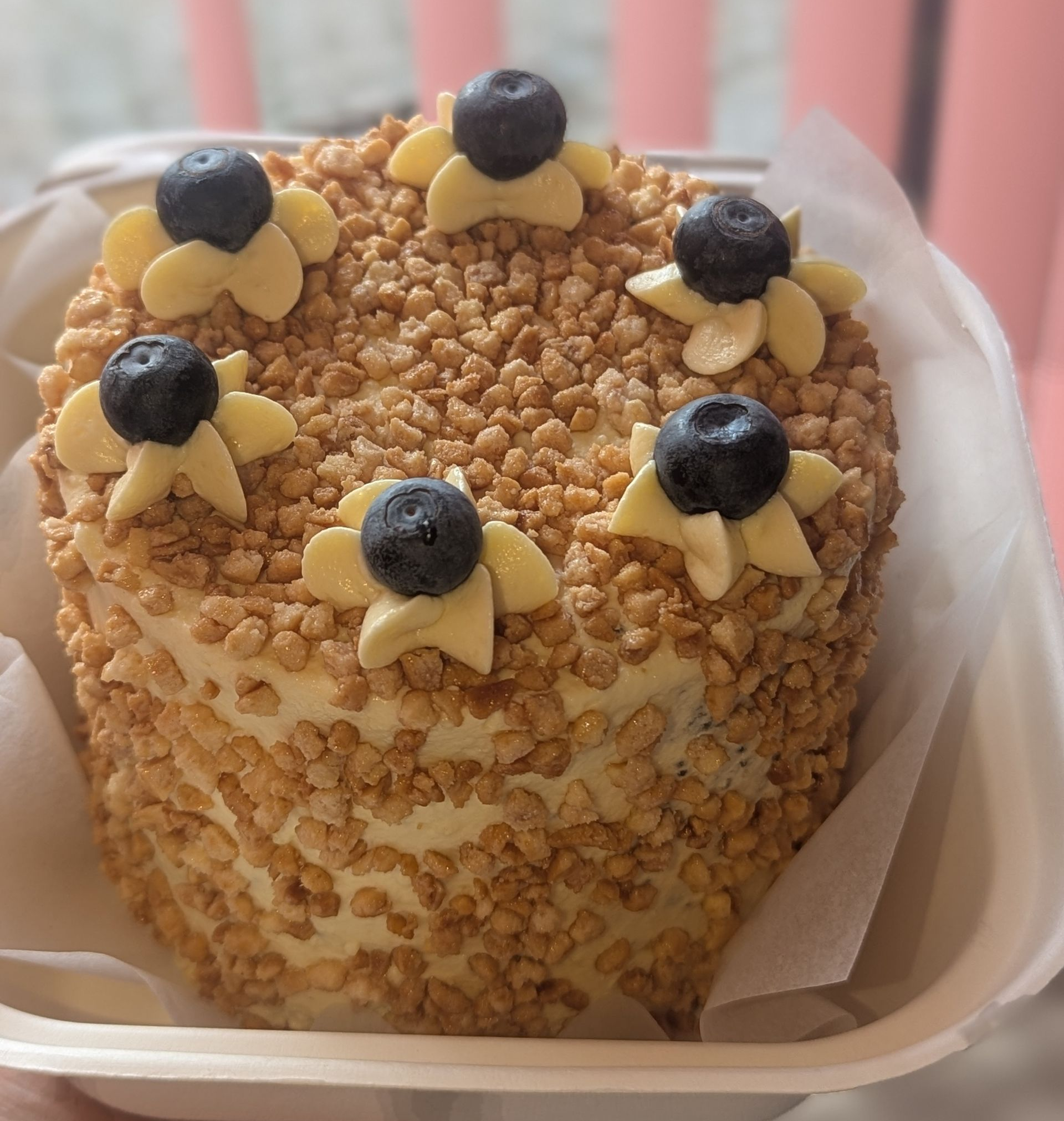 Bento-Cake "Mohn küsst Heidelbeer" mit Mandelkrokant